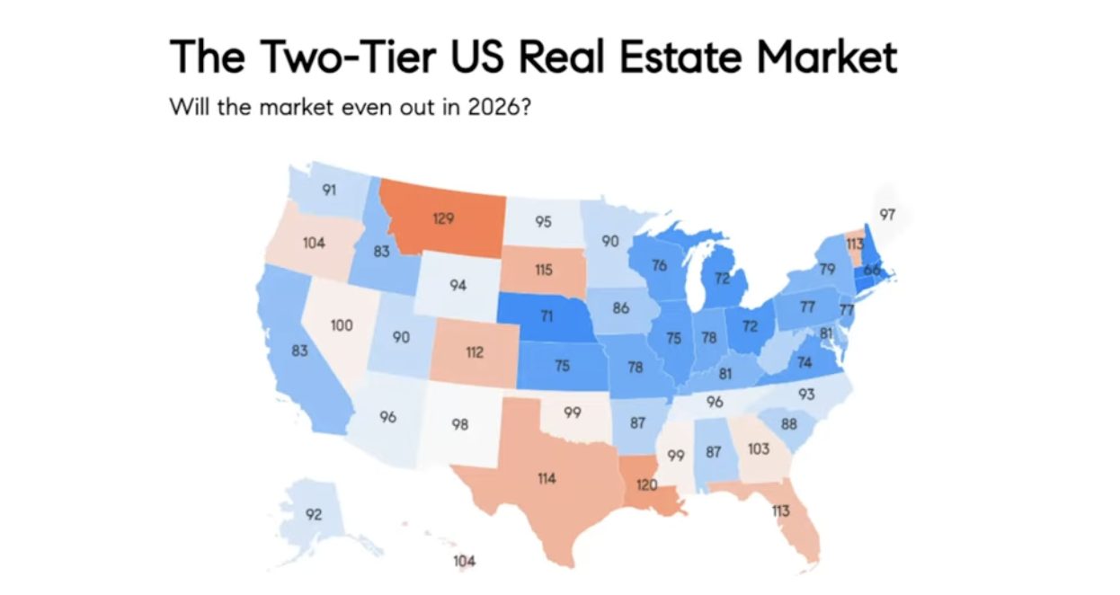 The Midwest and Northeast are on fire. Nebraska is the hottest market in the country right now at just 71 days on market. The entire East Coast corridor is deep blue, meaning homes are moving fast. Meanwhile, states like Montana (129 days), Texas (114 days), and Louisiana (120 days) are red, meaning homes are sitting significantly longer before selling. Those markets got overbuilt or overpriced during the pandemic boom, and now buyers have pulled back.